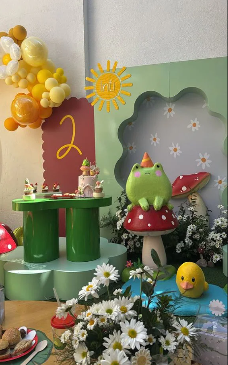 La fiesta estuvo ambientada en un estilo de cuento mágico, con decoraciones infantiles y momentos pensados especialmente para que Inti disfrutara junto a otros niños.