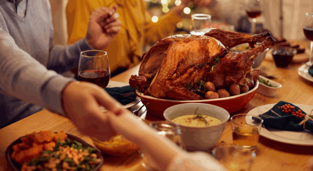 La supervivencia fue posible gracias a la ayuda mutua con una tribu nativoamericana que guió a los colonos para salvar la cosecha y sobrevivir. En agradecimiento por la provisión, los invitaron a una celebración conjunta en la que cenaron pavo. Esta acción colectiva de dar gracias a Dios por los alimentos en la mesa sentó las bases de la tradición.