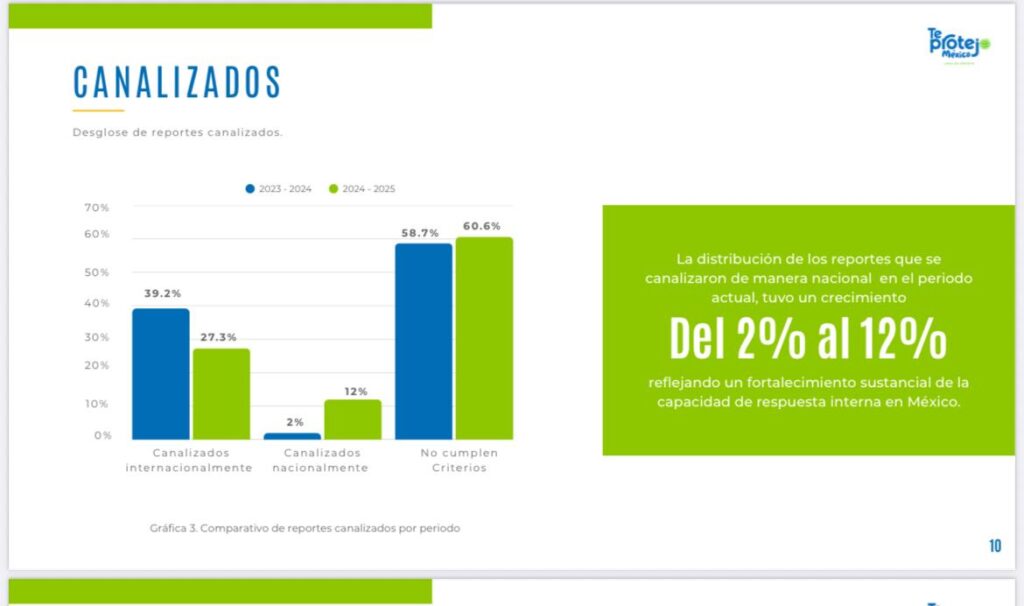 Gracias a ello, la proporción de reportes canalizados internacionalmente aumentó de manera significativa.