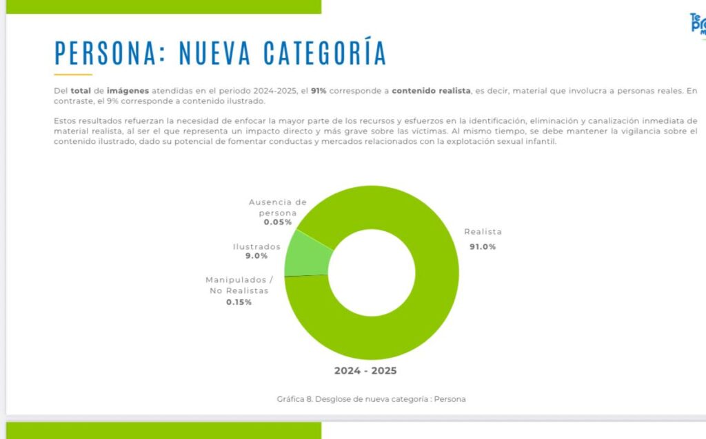 Solo entre 2024 y 2025, el 91 % del material atendido correspondió a imágenes realistas, lo que evidencia la complejidad del entorno digital actual y la urgencia de actuar con herramientas eficaces.