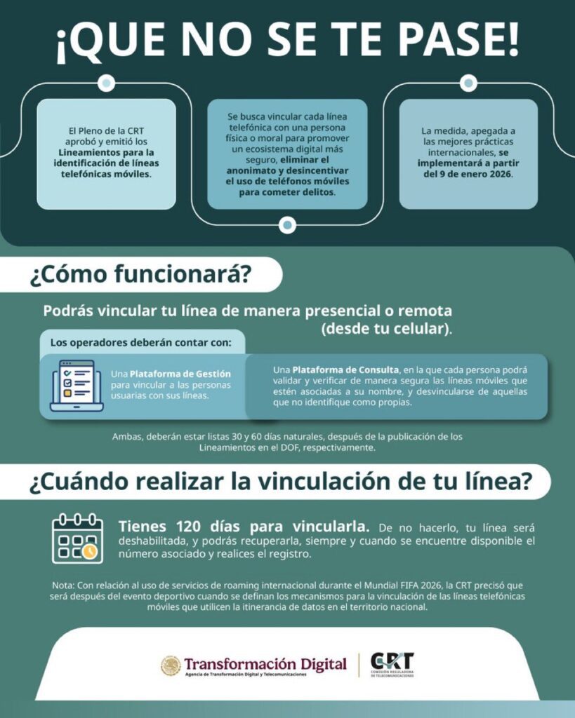 Por ello, desde este enero, cada número móvil debe vincularse a una persona física o moral. El registro exige identificación oficial y CURP válida.