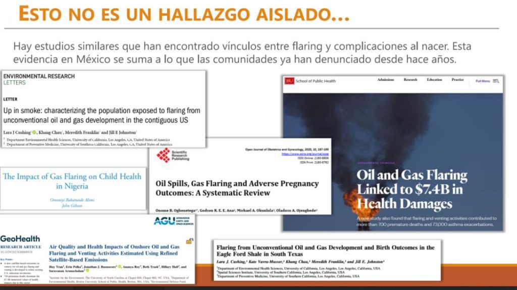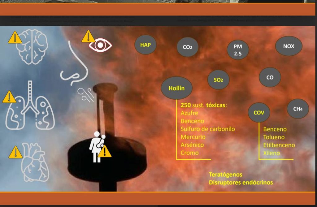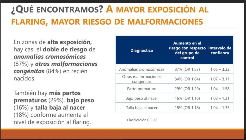 “La quema de gas libera compuestos altamente tóxicos que afectan a los bebés incluso antes de nacer”, explicó Carla Flores, de CartoCrítica.