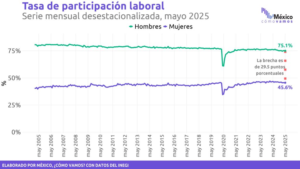 La falta de acceso a empleo remunerado impacta directamente la autonomía económica de las mujeres. Según datos del Instituto Mexicano para la Competitividad (IMCO), el 54 % de las mujeres fuera del mercado laboral realizan tareas de cuidado no remunerado.
