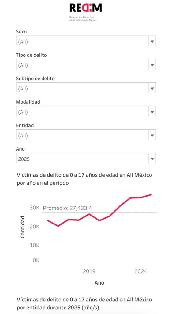 En la última década, de 2015 a noviembre de 2025, REDIM documentó 884 feminicidios de niñas y adolescentes en todo el país.