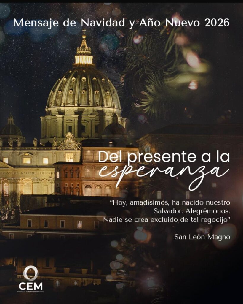 Ciudad de México.- La Conferencia del Episcopado Mexicano (CEM) difundió su Mensaje de Navidad y Año Nuevo 2026, en el que hizo un llamado a la esperanza, la unidad y la reconciliación social, al señalar que México necesita reconstruir su tejido comunitario desde la fe, la familia y el compromiso con el bien común.
