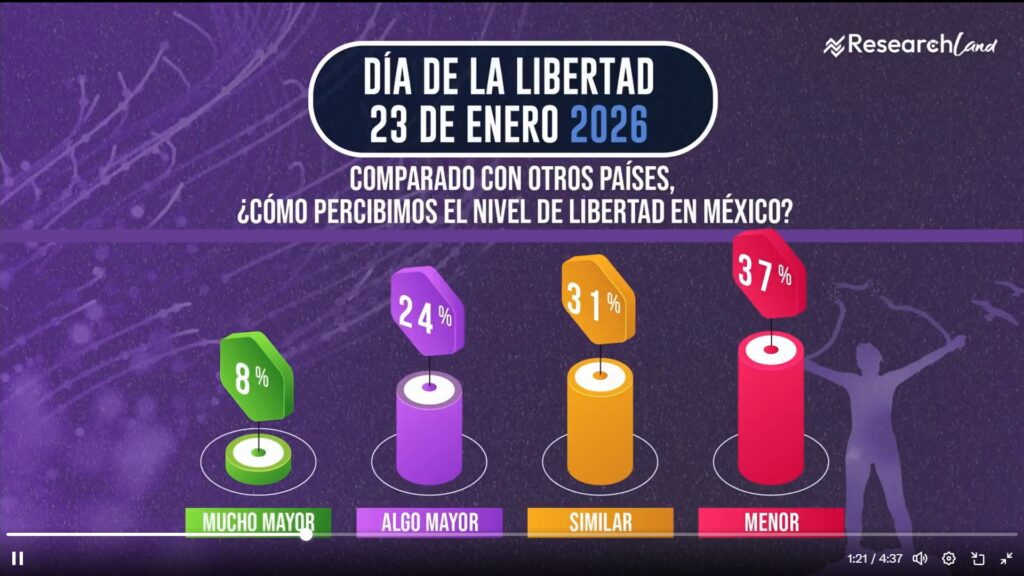 Ciudad de México.- En el marco del Día de la Libertad, que se conmemora este 23 de enero, una encuesta muestra una percepción crítica sobre el estado actual de la libertad en México, así como los principales retos que enfrenta el país para garantizar este derecho fundamental, indispensable para la vida en familia y la convivencia social.