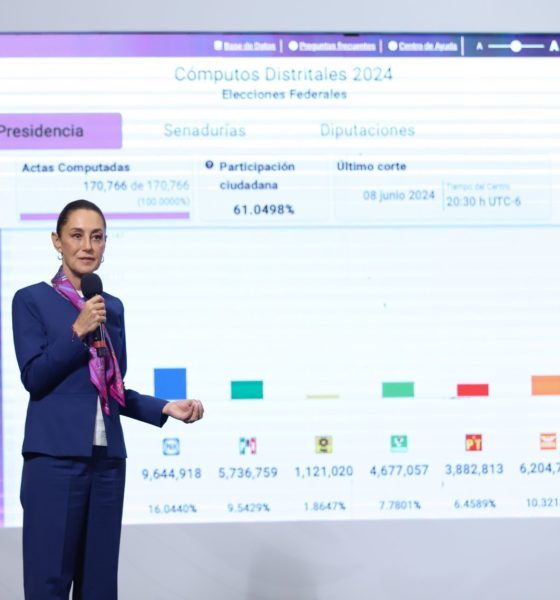 Durante su mensaje, la presidenta también agradeció las palabras de López Obrador, quien calificó la jornada como un hecho inédito en la historia democrática del país.