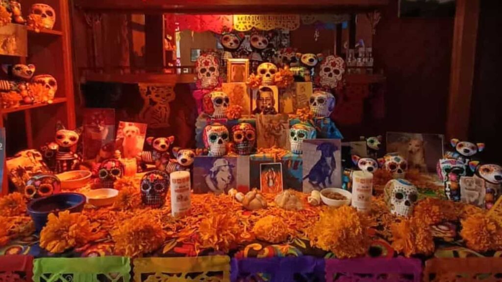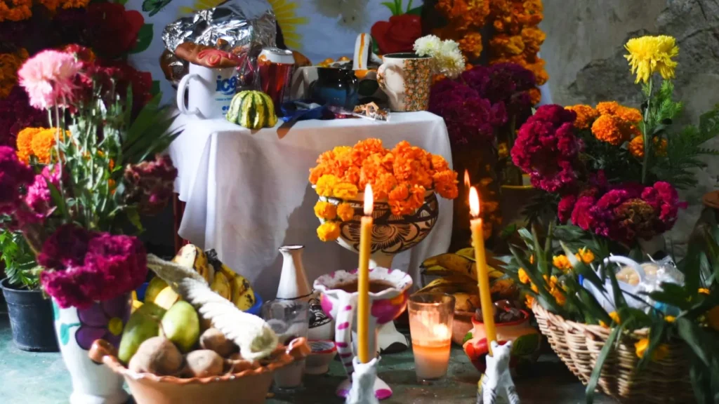 Además, muchas de las frutas que se usan son de temporada y propias del entorno mexicano durante estas fechas. Su presencia en el altar también hace alusión al ciclo natural: cosecha, agradecimiento y memoria.